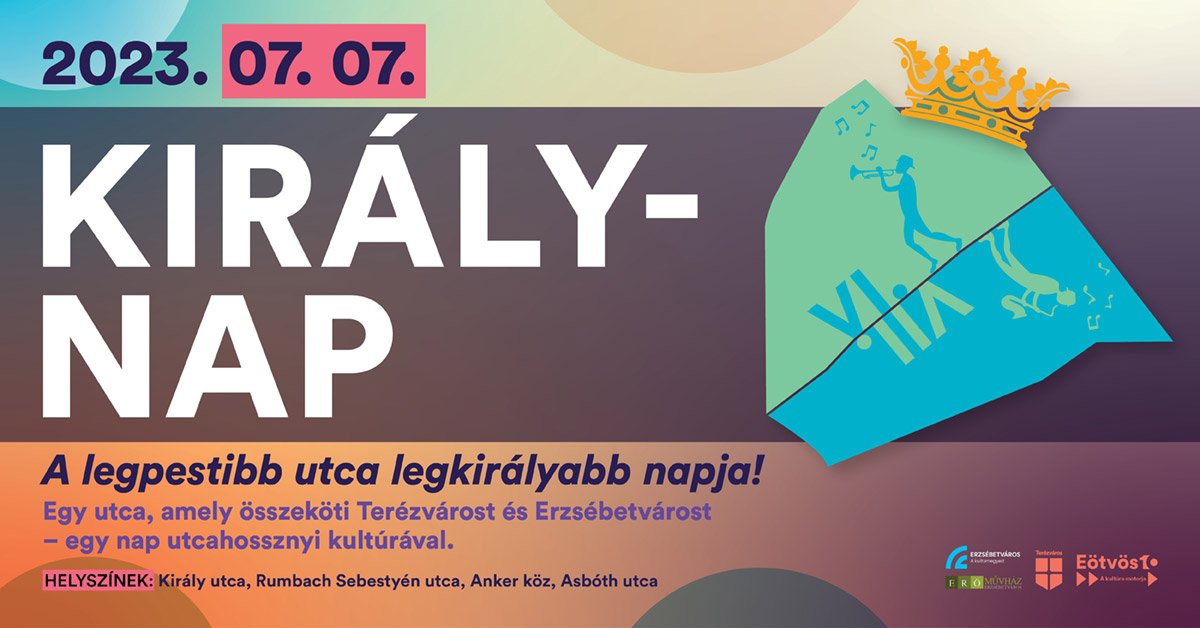 „Egy nap utcahossznyi kultúrával" – ezzel a szlogennel rendezik meg a nyár egyik legizgalmasabb belvárosi programját a Király utcában, ez az utca összeköti Terézvárost és Erzsébetvárost, de bulinegyedet és a magas kultúrát is érinti, tehát egy különleges budapesti helyszín. Július 7-én pedig koncertekkel (Búgócsiga Zenede koncert gyermekeknek, Szűcs Judith, Budapest Klezmer Band, Mordai, Etnosound), vetélkedőkkel, kvízekkel, kirakodó vásárral, helytörténeti sétával, kézműves foglalkozásokkal készülnek a szervezők több helyszínen az Anker közben, a Csányi5-ben, a Roth Múzeumban és a Hernád házban.