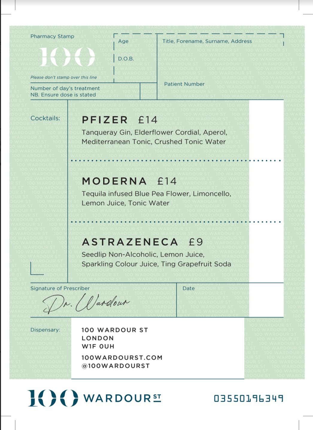 Nekünk, magyaroknak a Pfizer-koktélról elsőre biztosan nem egy ital jut az eszünkbe, hanem a most aktuálisan a hírekbe került oltások keverése, variálása – ennél sokkal szórakoztatóbb a 100 Wardour St. itallapja, amely egy oltási lapra emlékeztet. Érdekesség még, hogy a koktélokat úgy állították össze, hogy azon korosztály ízlésének feleljenek meg, amely az adott oltást kapta Angliában.