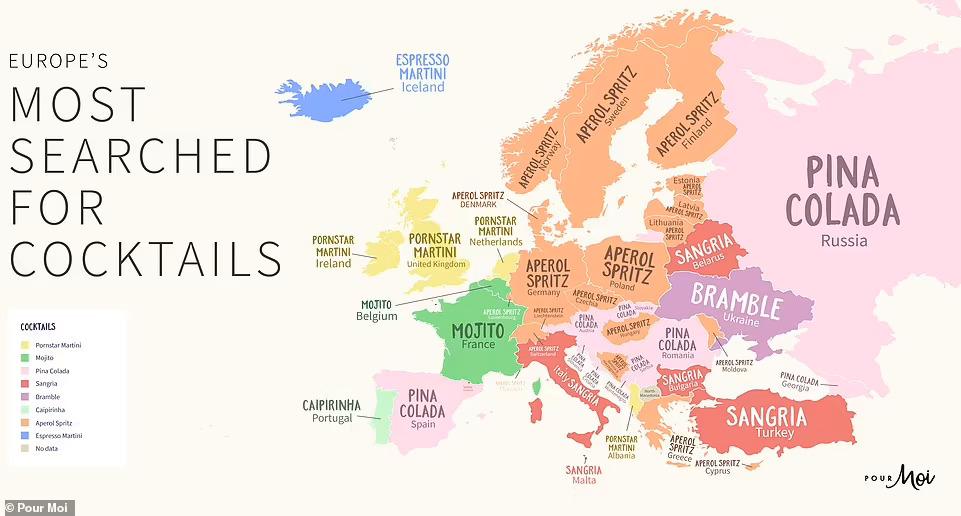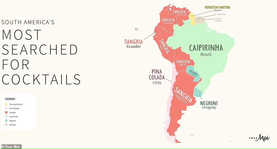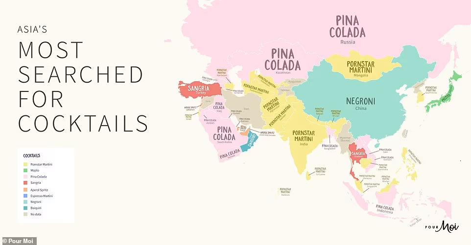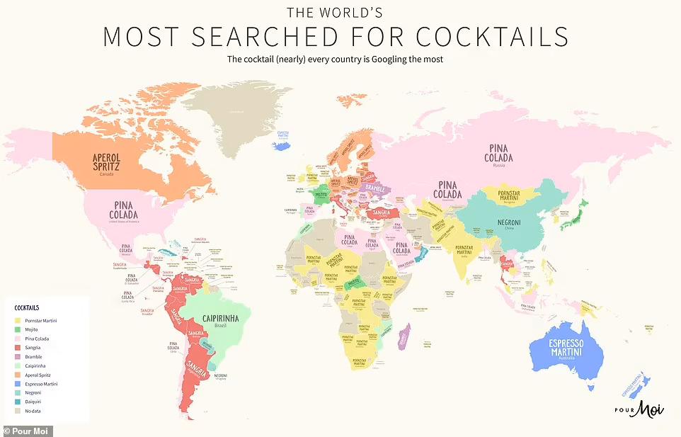 A Pour Moi a blogján arról számolt be, hogy világszerte több mint 18,4 millióan kerestek rá a Pornstar Martinire. A Pina Colada-t 10,5 milliószor guglizták, míg az Aperol Spritz 8,2 millió kereséssel harmadik lett. A Google keresési adatai szerint a térképen az országneveket kicserélték a lakóik által leginkább keresett koktélnévre, azaz valószínűleg ezekre a receptekre azért kerestek rá, mert otthon vagy egy partin el szerették volna készíteni.