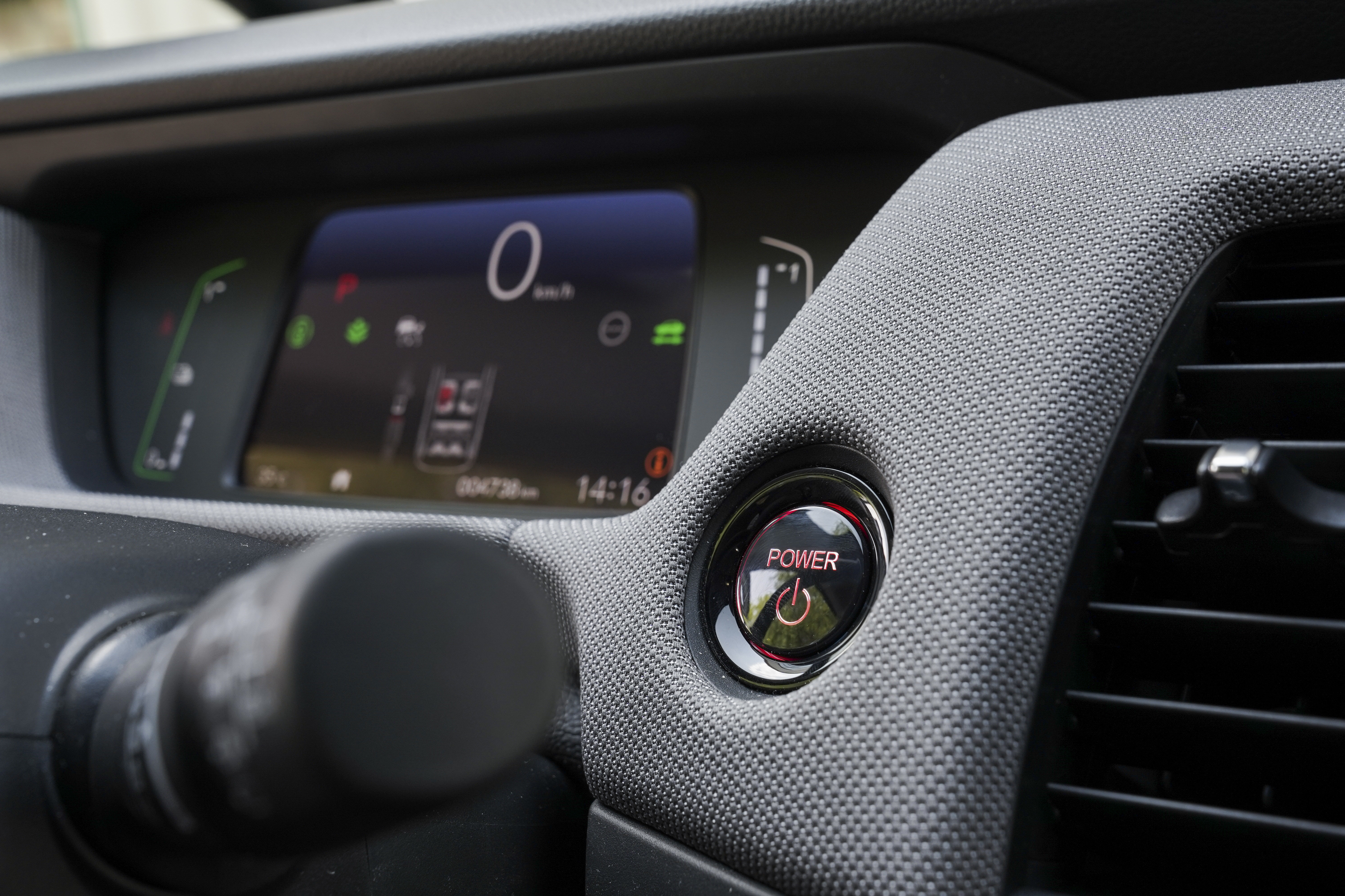Amikor hátra mozdítjuk a sebességváltó kart, a D helyett nagyon könnyen az utolsó, B fokozatba kapcsolhatunk. B helyzetben az autó a gázpedál elengedésekor a fokozott visszatermelés mellett lényegében az elektromos motorral fékez. Mielőtt D helyzetbe kapcsolnánk és útra kelnénk, érdemes kicsit tanulmányozni, hogyan működik a rendszer. A karosszéria alakjának köszönhetően a sofőr remekül belát mindent.