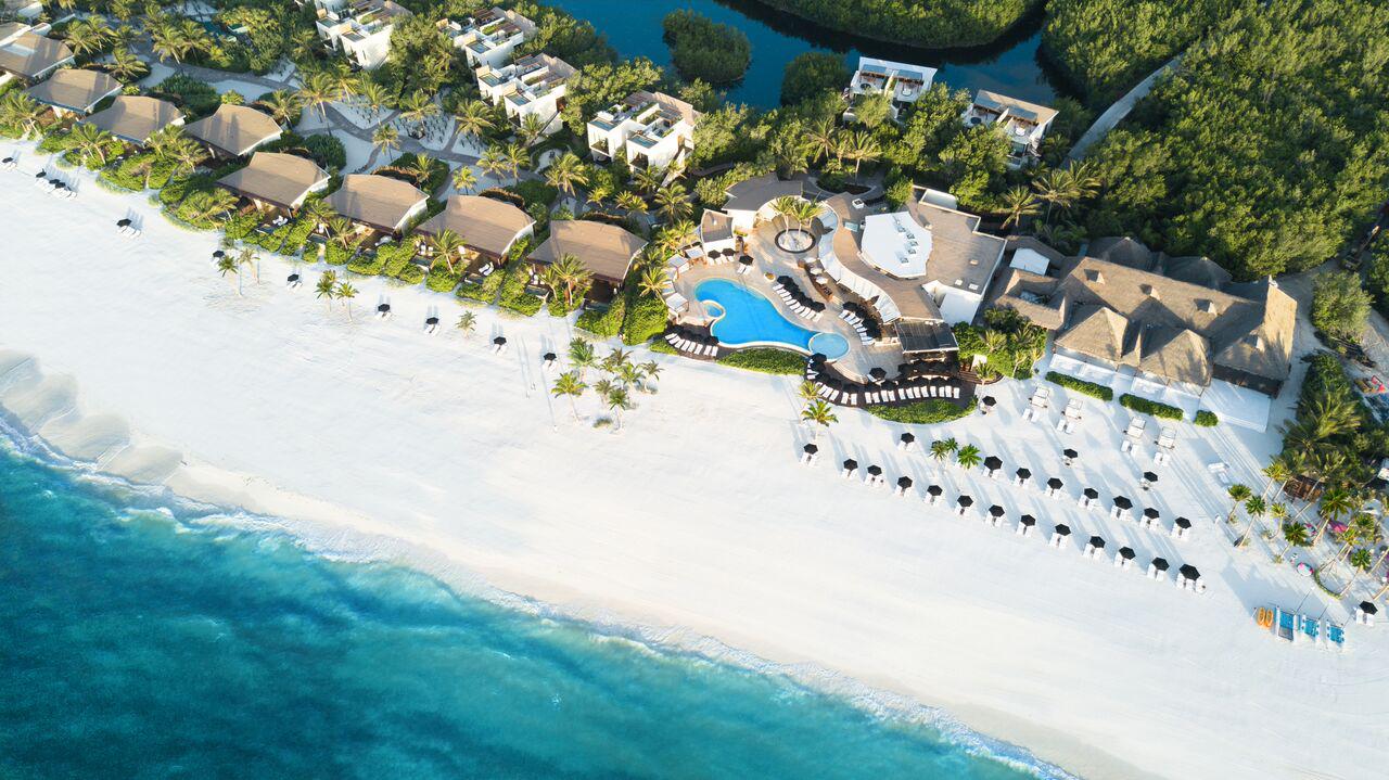 A mexikói Riviera Mayán (Cancúnhoz közel) felépített üdülőparadicsomon minden megvan, amit luxus alatt értünk, mégis nagyon természetközeli, pálmafák és mangrovék veszik körbe a bungalókat. Minden házhoz tartozik medence, szabadtéri zuhany – a karibi hőségben nincs is jobb, mint ez a lagúna.