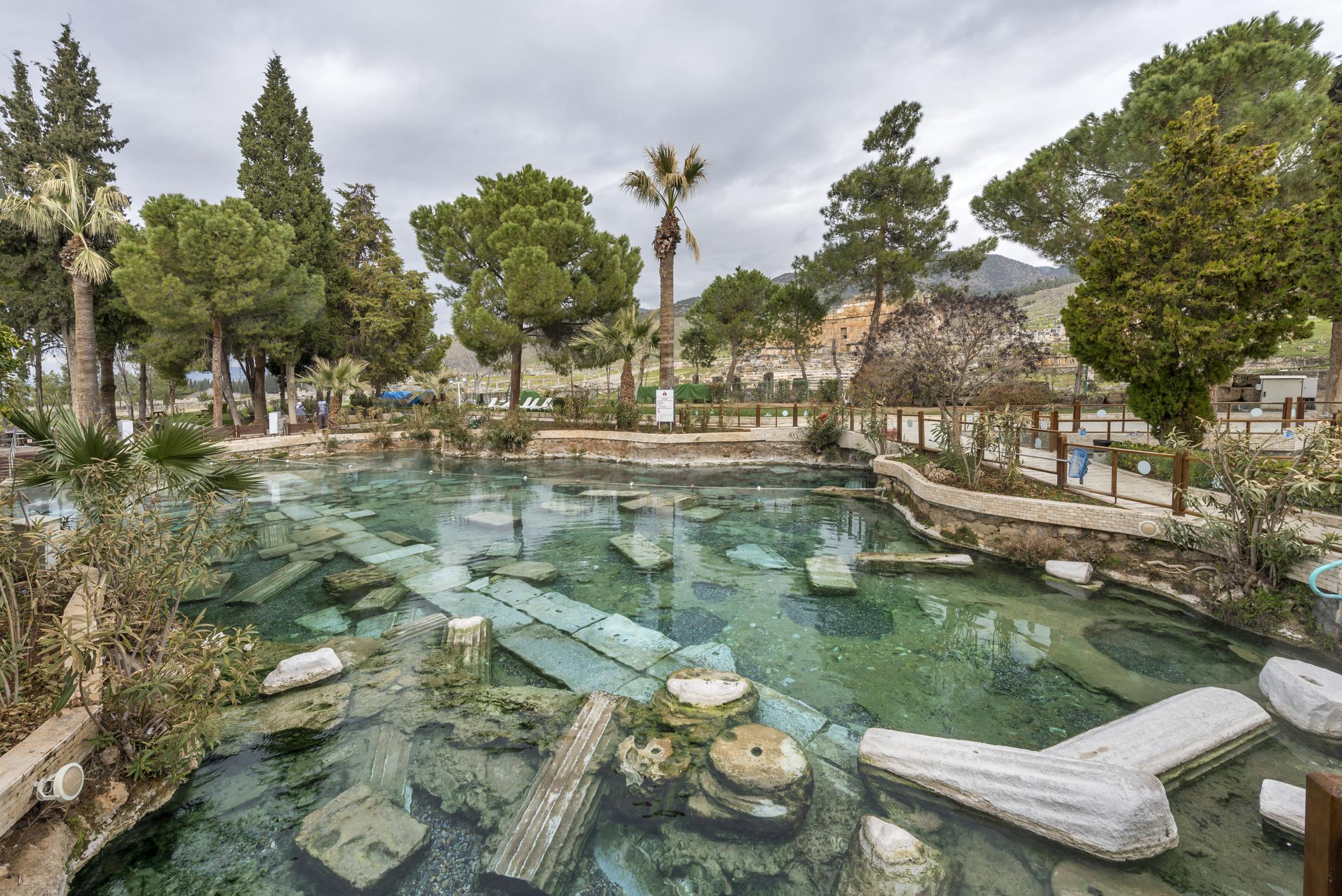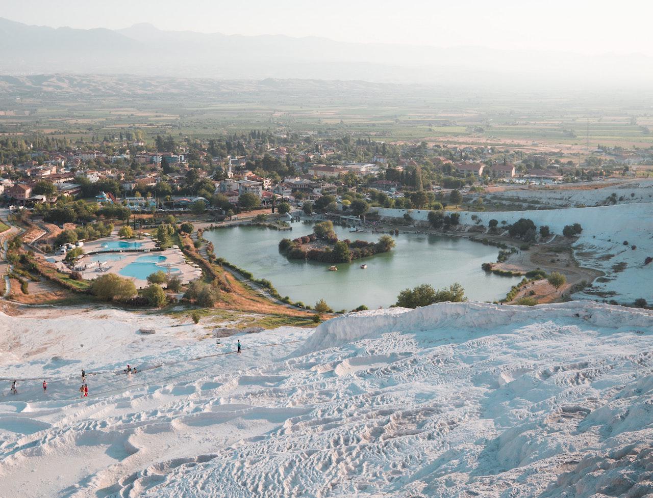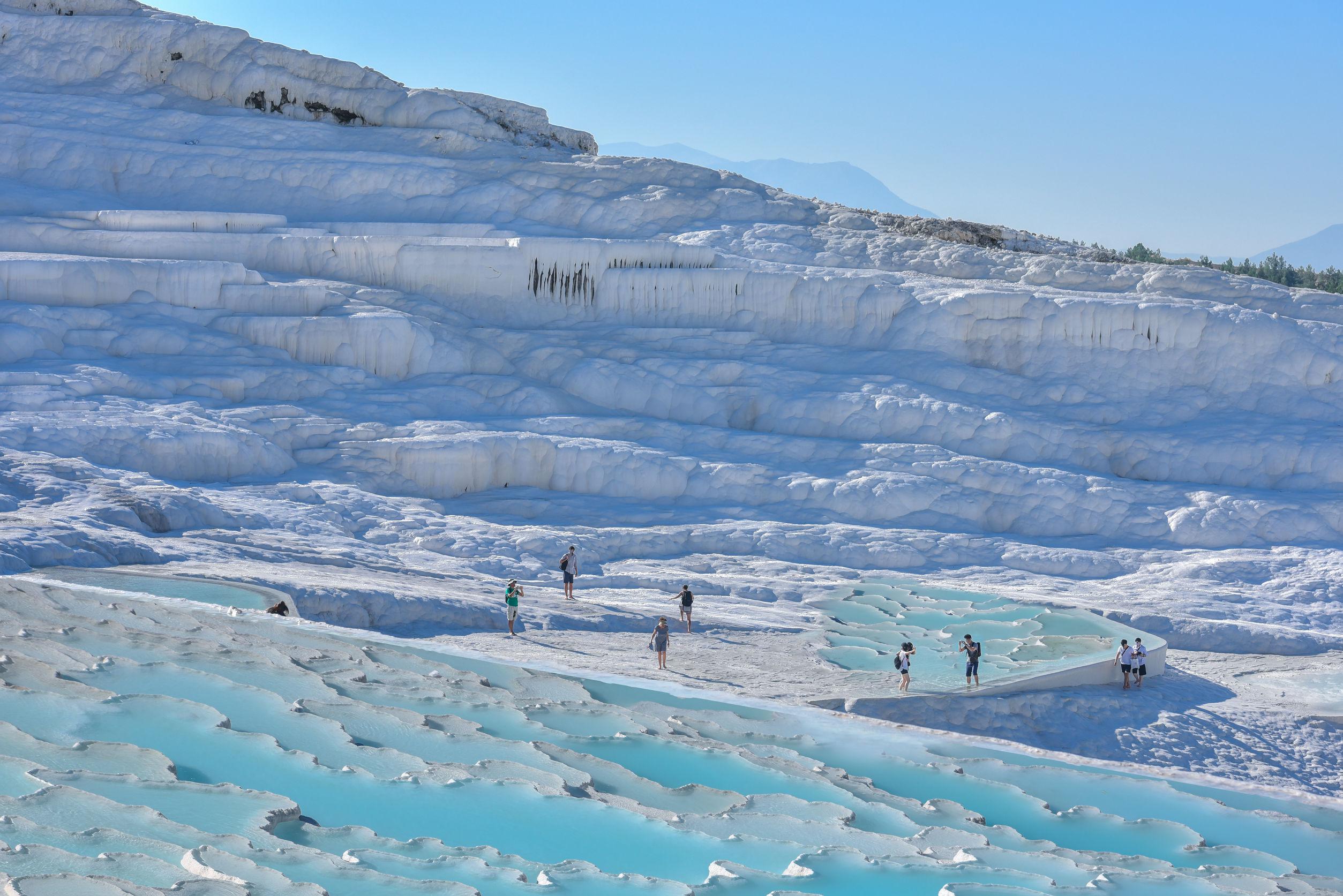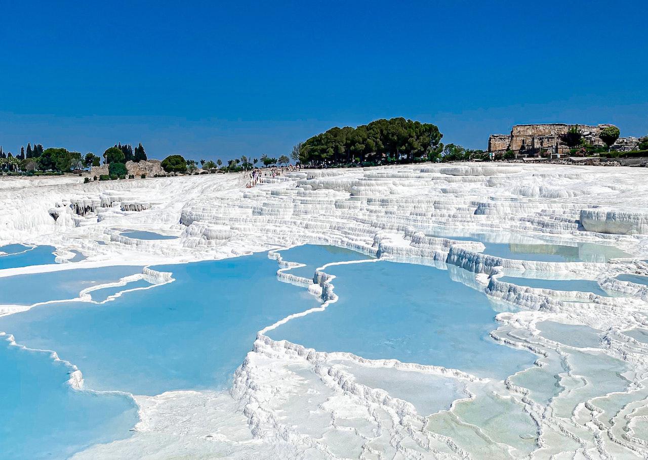 Hierapolisz mellett van Pamukkale, amelyet gyalogosan is megközelíthetük az ókori városból. A gyógyvizes medencék az UNESCO Világörökségének részét képezik, és Törökország egyik legnépszerűbb látványossága – évente 3 millió turista látogat a gyógyfürdőhőz, persze békeidőben.