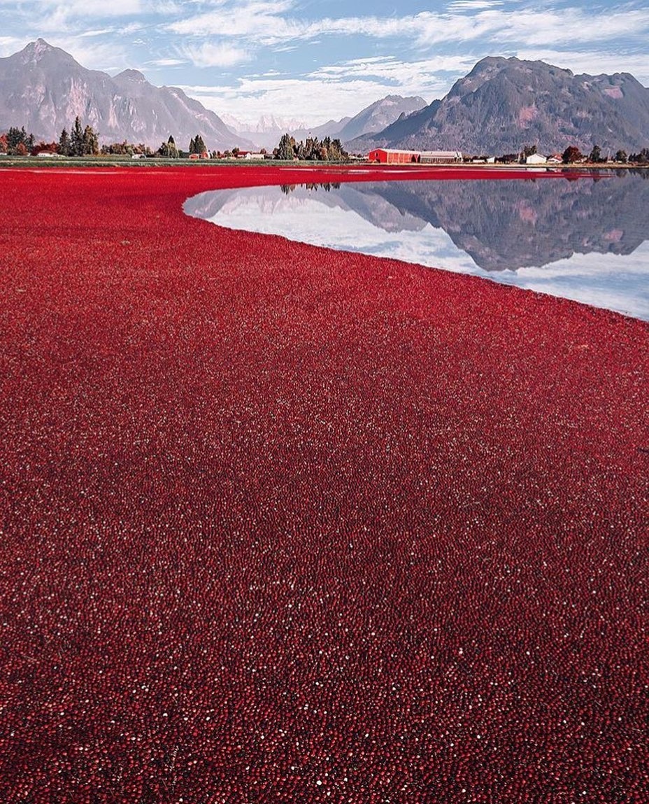 Az egész vörösáfonyaszezonban azonban talán nem is annyira annak fogyasztása, mint maga a szüret az igazán izgalmas. Hogy miért? Hát a látvány miatt! Az áfonyaszüret ugyanis egyet jelent egy végtelen piros áradattal az amúgy is színes őszi tájban, amikor a leszedett gyümölcsöt nagy mennyiségben beleszórják egy (természetes vagy mesterséges) tóba, ott egy ideig áztatják, majd a víz felszínéről leszűrik és leválogatják.