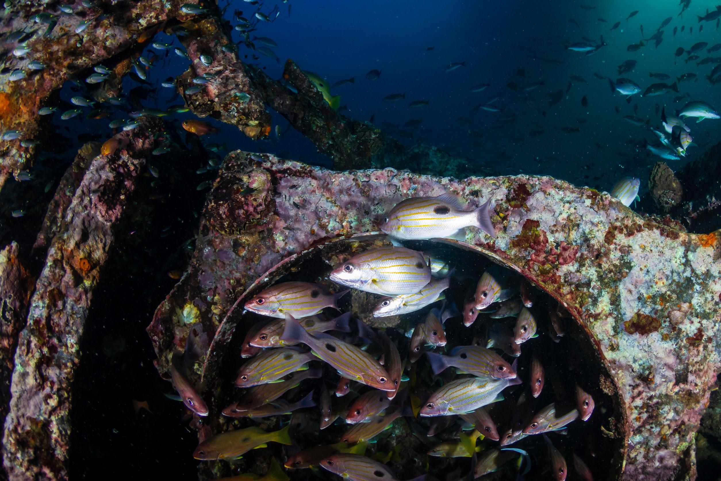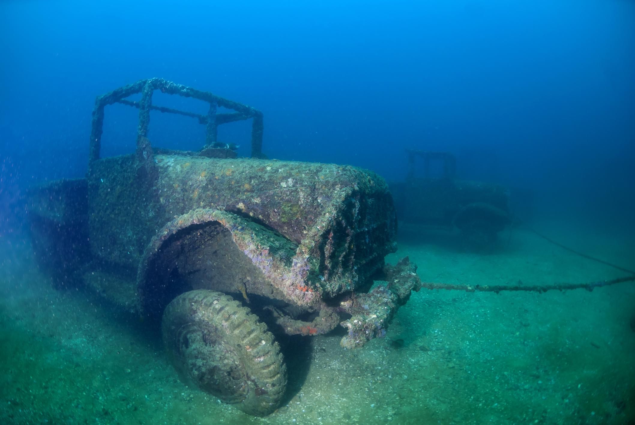Sajnos sok olyan baleset előfordul, ami során autók kerülnek vízbe és gyakran egyszerűbb azokat a tó, folyó vagy a tenger fenekén hagyni. De vajon hogy kerül mélyen az óceánba katonai teherautó? A fenti kép egy Tor13 nevű, mesterséges thaiföldi zátonyon készült, amelybe rengeteg roncsot betonoztak le, teherautókat, katonai járműveket, csónakokat, benzintartályokat, és élénk vízi élet alakult itt ki a mélytengeri installációban és környékén.