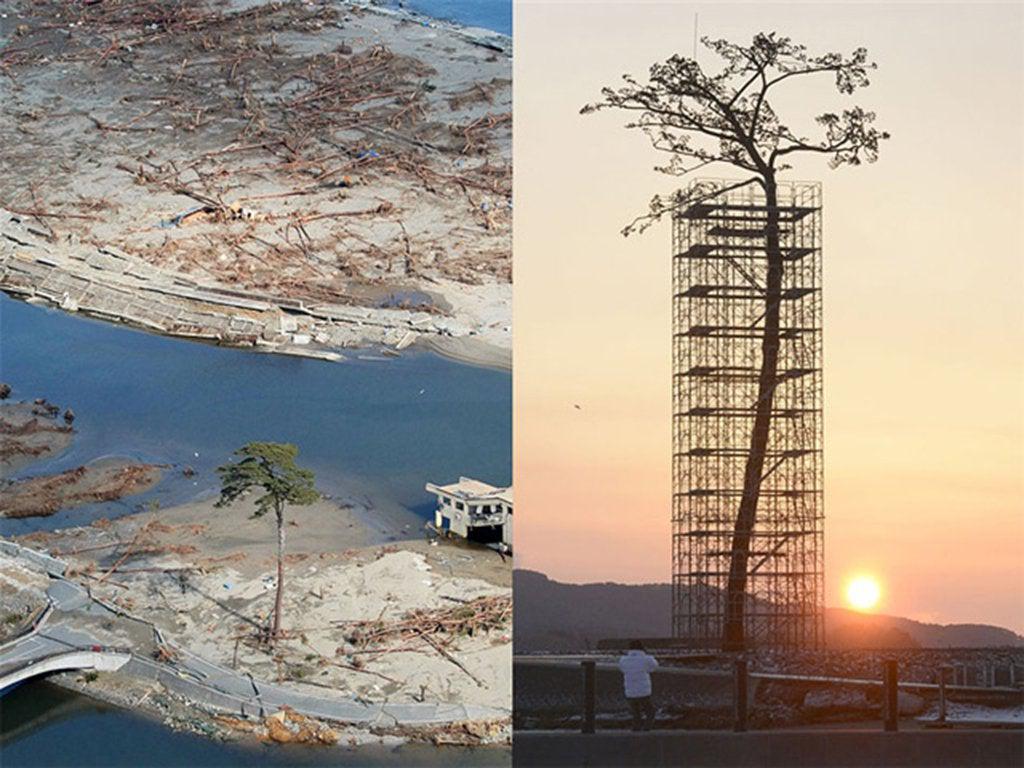 Ez a Japánban álló fa, túlélt egy cunamit, amely 70 ezer fát pusztított el, a japánok gondosan védik ezt az öreg fát és szeretnék épen megőrizni, ezért felálványozták.