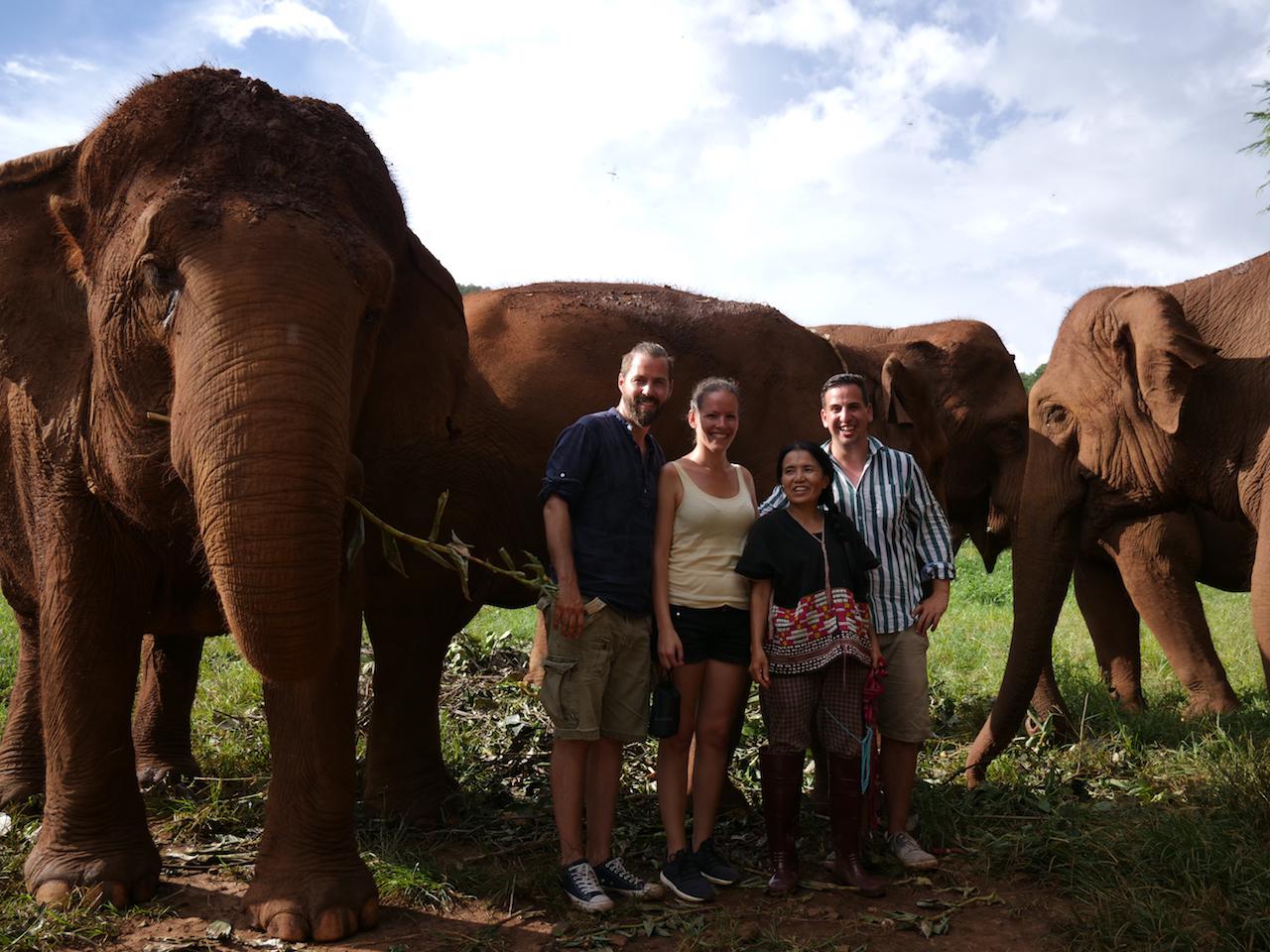 Mátai András: Összesen háromban. Először egy általunk csak rossz parkként nevezett állatkertszerűséget kerestünk fel, ahova természetesen nem kaptunk forgatási engedélyt, sőt még csak egy válaszlevelet sem, így ott inkognitóban forgattunk. Látszólag egyébként teljesen jól nézett ki – szép, nagy park, rendezett környezet –, aki nincs tisztában az elefánt turizmus sötét titkával, annak fel sem tűnik, hogy valami nem stimmel. A második hely már egy etikus park volt, Elephant Jungle Sanctuary a neve, itt csak olyan programokon lehet részt venni, ami az elefántoknak is jó, például kizárt a rajtuk való lovaglás. Korábban olvastunk erről a helyről is egy, két negatív véleményt, de ezt a személyes élmény nem támasztotta alá. Az előző parkhoz képest viszonyítási alapunk is volt, ahhoz képest láthatóan sokkal boldogabbak voltak itt az állatok. Elsősorban nem is fizikálisan, hanem inkább a szemükben látszott, hogy jól vannak a bőrükben. Az Elephant Nature Parkba nagyon el akartunk menni, rengeteg levelet írtunk ez ügyben, de mindig kitérő választ kaptunk. Amikor Thaiföldön voltunk, minden nap bementünk az irodájukba, hogy itt vagyunk, szeretnénk forgatni, de akkor megtudtuk, hogy a hely vezetője, Sangdeaun „Lek" Chailer nincs az országban – akkor nagyon elszomorodtunk. Aztán egyszer csak jött egy e-mail, hogy Lek másnap vár minket.